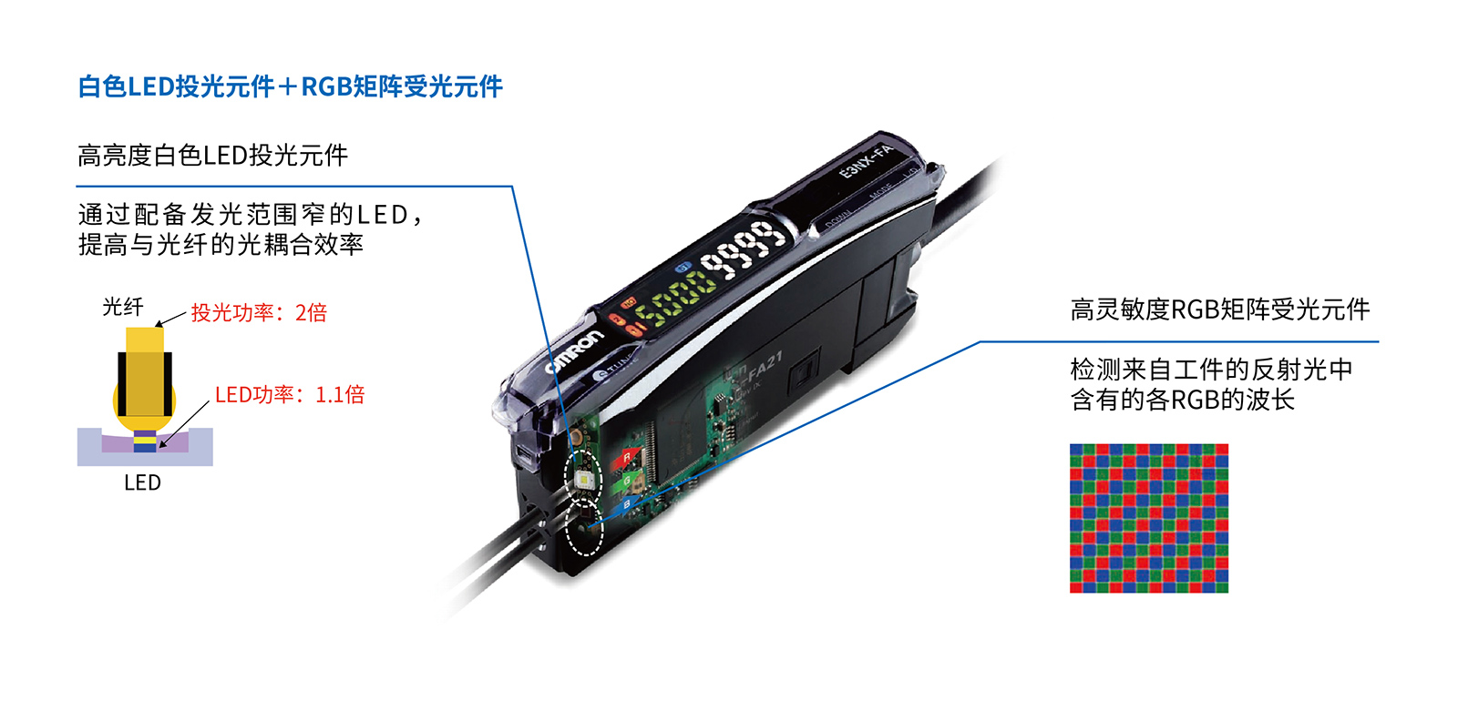 拥有白色LED的新光学系统,投光量得到提高,提升对细微色差的判别力,即使批次变更也较稳定。同时,采用波长范围宽广的白色LED,更容易区分各种波长的颜色。