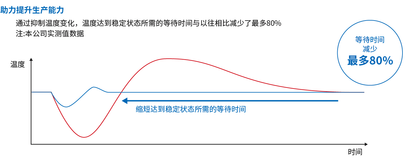 利用外部干扰抑制功能,将温度波动控制在较小限度,温度达到稳定状态所需的等待时间与以往相比减少80%。