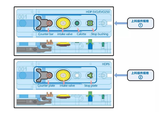 上料站采用机器手实现高压油泵上不同规格组件的自动组装。