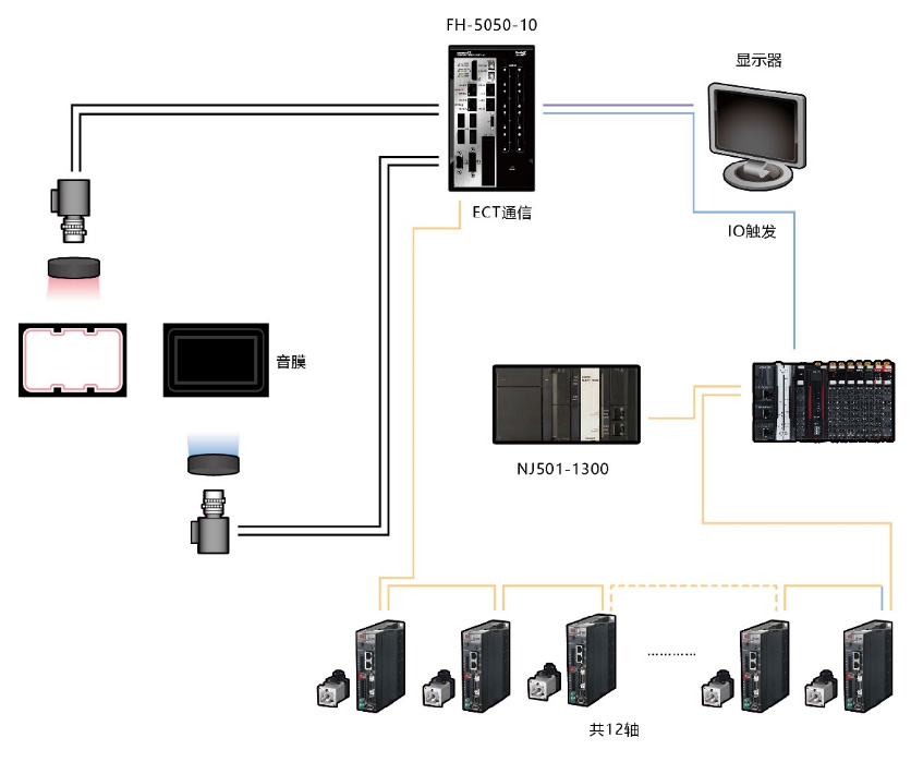 利用开云(中国)机械自动化控制器NJ/NX系列内置的飞拍技术,以及高速图像处理系统FH系列,解决了高速移动中拍照位置的准确性以及图像的快速读取和处理,减少了因拍摄确认造成的设备停顿,促进了设备工艺的升级。