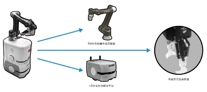使用LD90小车作为移动平台,在LD小车上集成TM协作机械手,构成MOMA移动手臂开云app登录入口,并安装3D打印成型专用夹爪,满足自动配石需求。