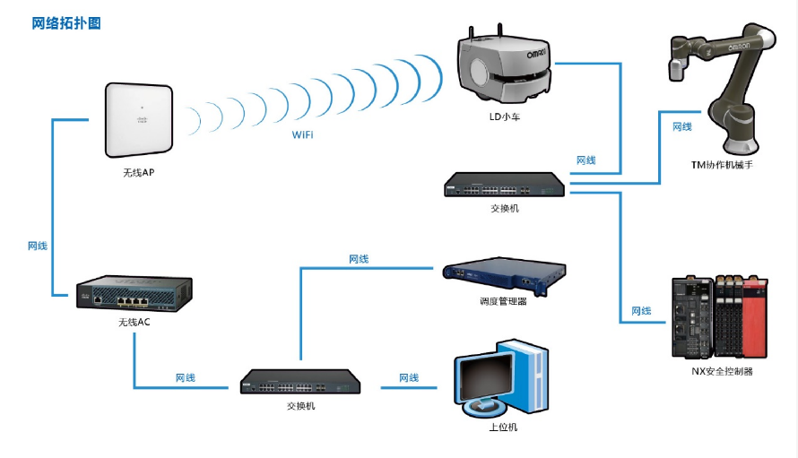 【移动机器人 LD系列】能够通过传感器探测周围环境,安全灵活地避开人和障碍物,再加入专用NX系列安全PLC,急停开关、安全门开关和安全继电器等安全元器件,硬件上进一步提高安全性。