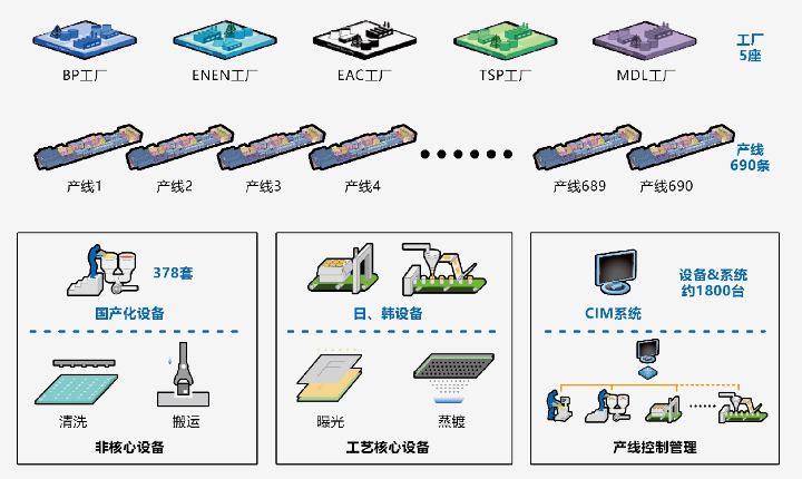 这是一家拥有5座工厂,上百条产线的大型OLED工厂,目前因处于传统的多人工生产、分散式管理模式,存在着较多课题,所以打算引入IoT技术、机器人技术,对整厂进行智能化改造。
