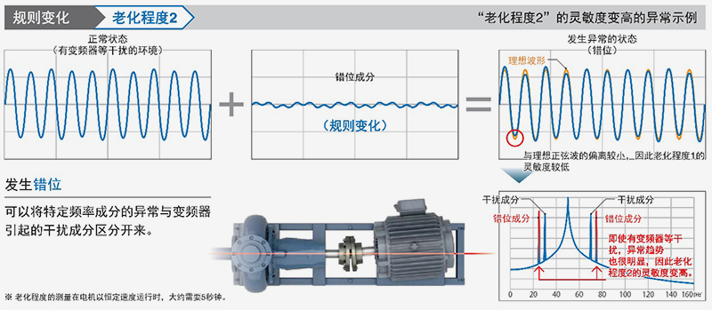 适用于监视对电机轴产生不规则影响的异常,因为它可以将采样期间所采集的整个电流波形数据,与理想的正弦波之间的偏离度换算成数值。