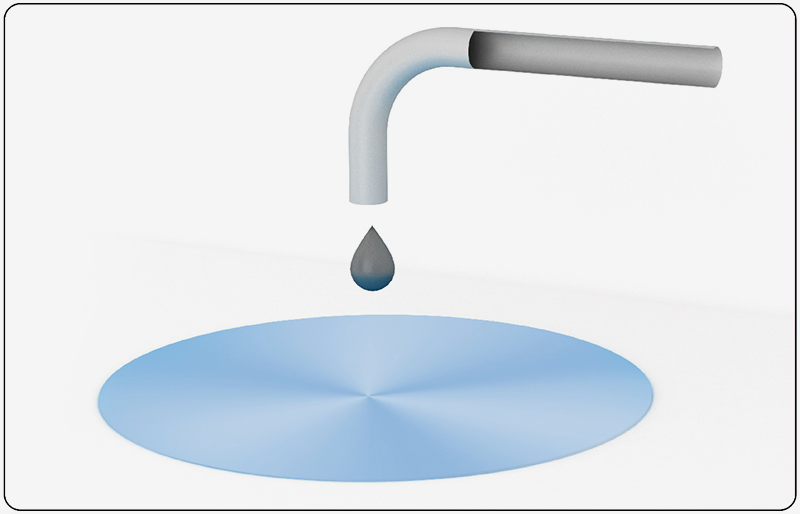 一、涂胶工艺:通过胶头将光刻胶滴到晶圆表面,真空吸盘吸住晶圆高速旋转进行匀胶。