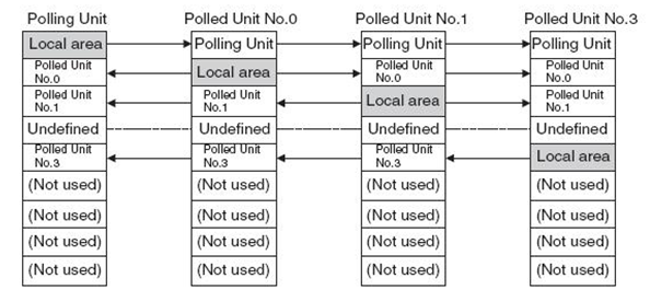 全部模式是指:主站的数据可以传递到各个从站,并且每个从站的数据可以传递到主站和其它各个从站;其地址分配:如果链接字设为10个字,则主站的发送区为CIO区为CIO3100---CIO3109,CIO3110开始为接收区对应每个从站10个连续字;从站0的发送区为CIO3110---CIO3119,对应主站的接收区为CIO3100---CIO3109,对应别的从站地址从CIO3120开始每个从站10个连续字,依次类推: