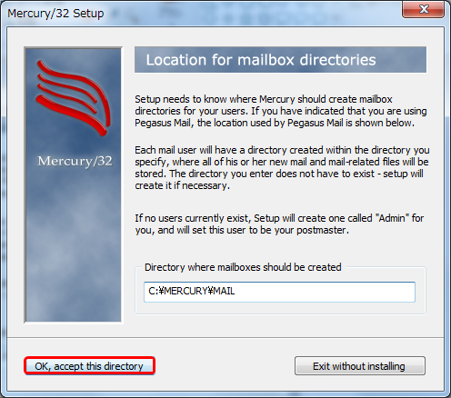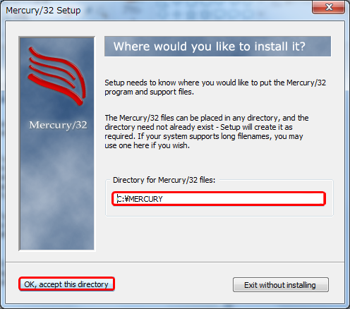 5.请确认安装目录,然后点击「OK、accept this directory」を。