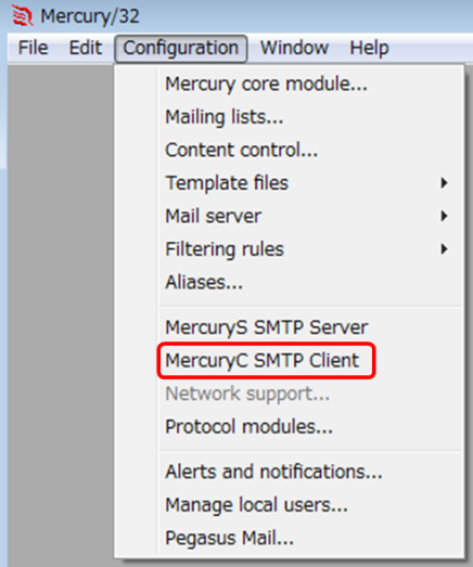 23.请点击上级菜单「Configuration」至「MercuryC SMTP Client」。
