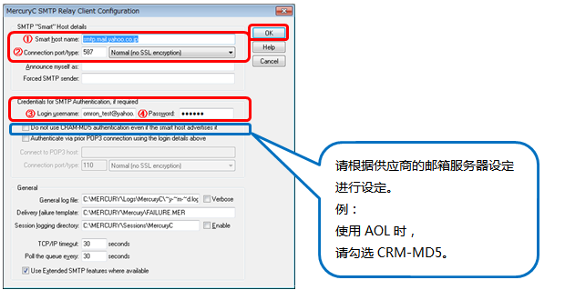 24.请在下记画面的①~④中输入SMTP信息,然后点击「OK」。