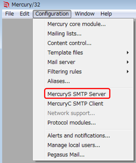 25.请点击上级菜单「Configuration」至「MercuryS SMTP Server」。