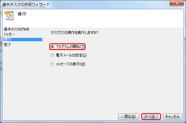 34.请在「操作」画面点击「程序开始」,然后单击「下一步(N)」。