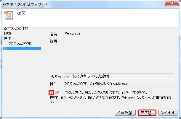 然后,使用任务日程表设定系统启动时启动「Mercury/32」。