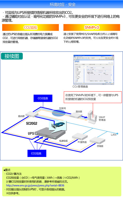 CO2监视功能 可监视与UPS所接续的情报机器所排放出的CO2。