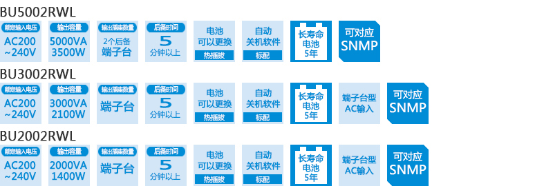 UPS中高端的在线式UPS,不受输入电压波动的影响,输出稳定的电压。另 外,万一发生不受控制的故障时,我们的标配中具备向连接设备持续供电的旁路 功能。