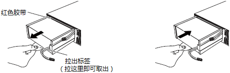 看到电池组上面贴着的红色胶带,表示还有10cm即可完全取出电池。双手紧握电池,请勿使电池坠落。