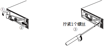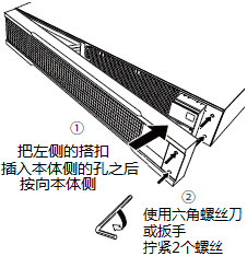使用六角螺丝刀或扳手顺时针旋转前面板右部的2个螺丝,拧紧螺丝②。