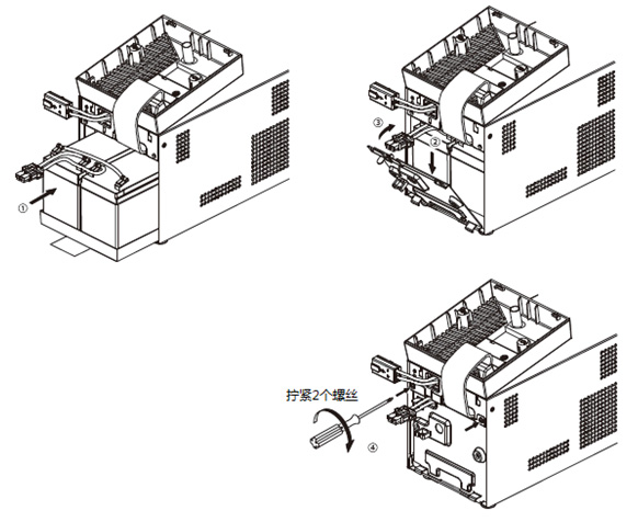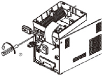 前面板安装在本体上。使用螺丝刀顺时针旋转分别在前面板中央部左右的2个螺丝,拧紧螺丝。
