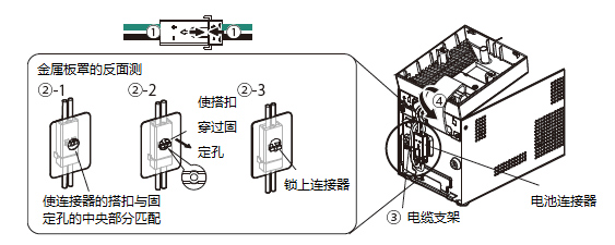 注:停止本体运转交换电池时,接续连接器时会发出“啪嗒”的声音,并非异常。