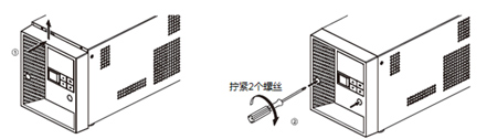 1.使用螺丝刀将位于本体前面板中央的2个螺丝逆时针松动。(螺丝为无法从前面板拆卸的