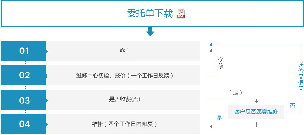 05) 接收到维修品实物1个工作日内将短信或传真/mail通知您检测结果,请注意查收。