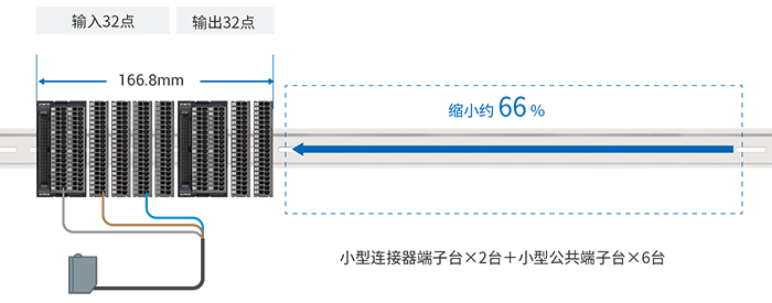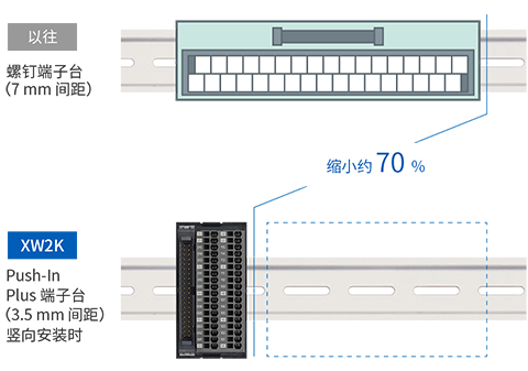 更小尺寸*1的连接器端子台有助于丰富控制柜功能和实现控制柜小型化。