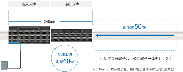 Push-In Plus端子台只需1步,*3. Push-In Plus端子台、螺钉端子台均为本公司实测数据